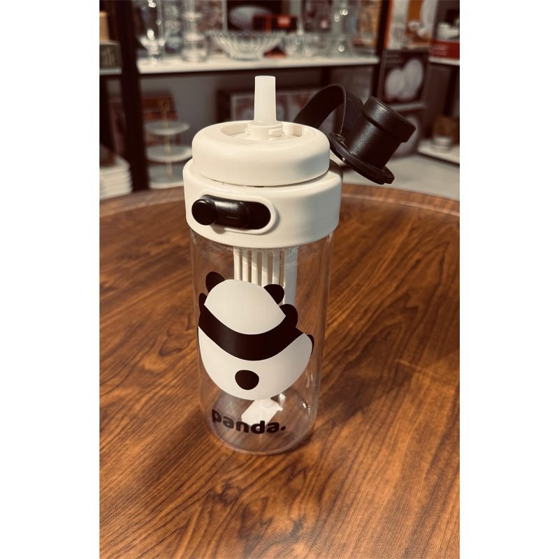Panda Glass Water Bottle with Filter – Simple Portable Design.